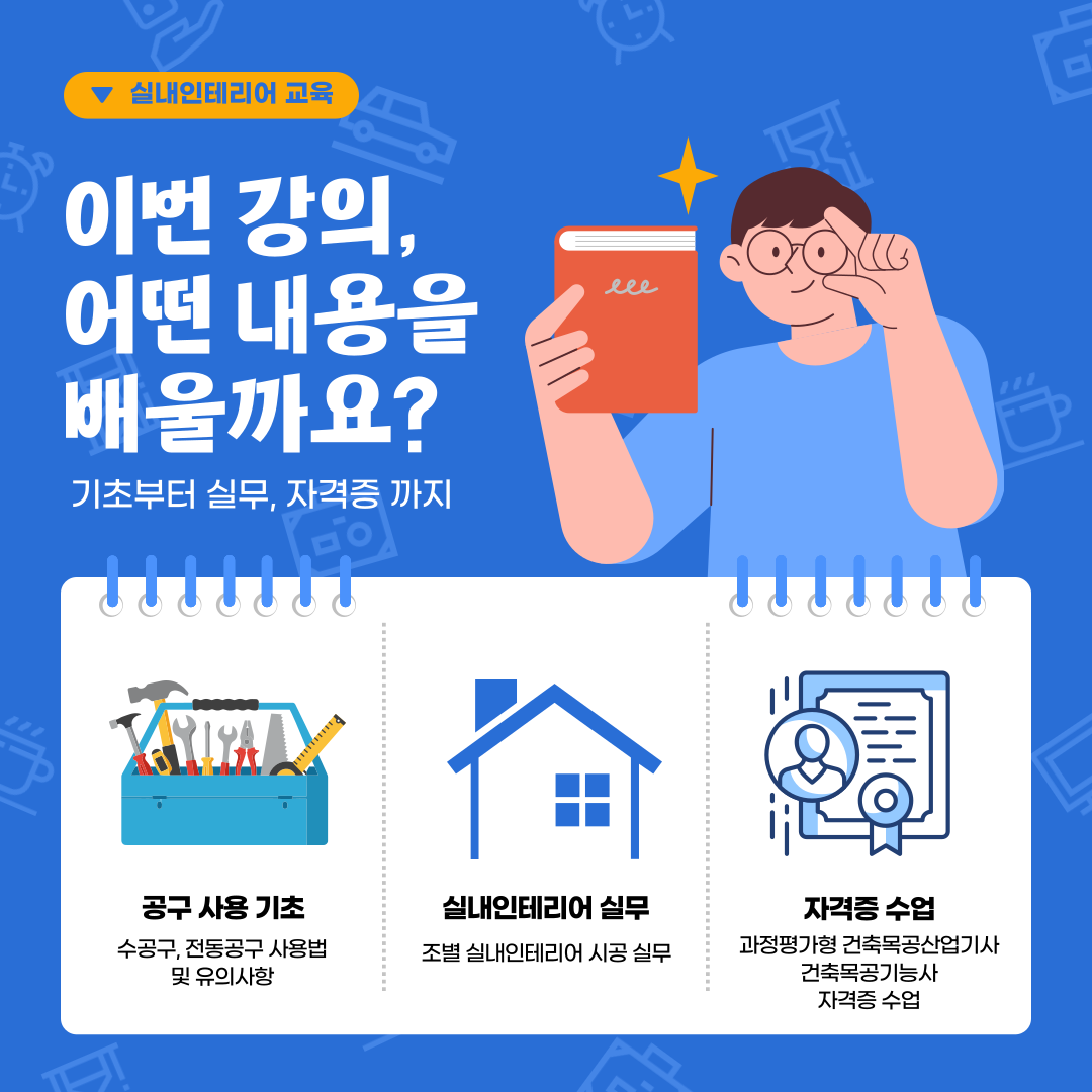 | 이전글 | 공지[안양캠퍼스 2월 개강] 실내인테리어시공실무 (건축목공+창호시공) |